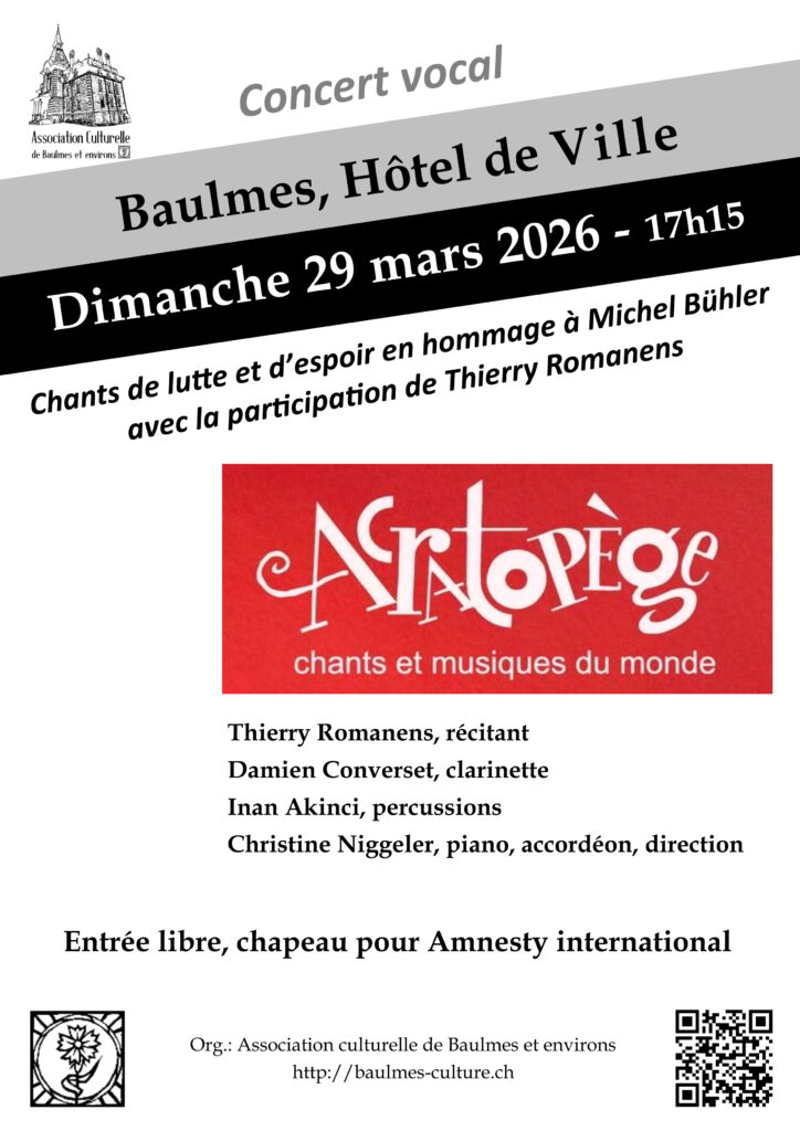 L’Association culturelle de Baulmes et environs, créée en 1982, organise spectacles, conférences, concerts et rencontres pour découvrir et promouvoir la culture de proximité.